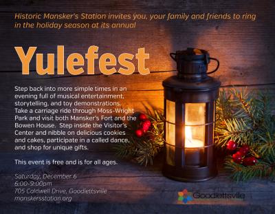 Parking for Yulefest is available at the Visitor's Center and in Moss-Wright Park.
