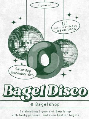 Bagelshop is celebrating its 2nd birthday all week long, and the party keeps going into the weekend with Bagel Disco on Saturday, December 6, from 7 a.m. to 2 p.m.—featuring birthday cake bagels, funfetti schmear, a live DJ, and a whole lot of boogie.