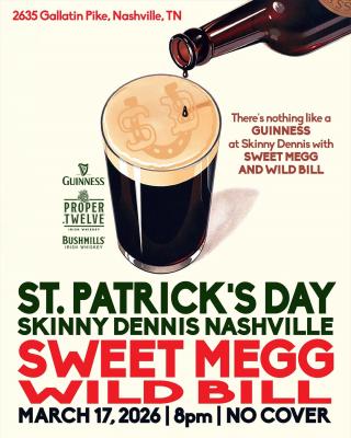 On St. Patrick’s Day, folks are invited to stop by venue and neighborhood bar Skinny Dennis to enjoy a night full of live music, dancing, and Guinness, featuring musical artists Sweet Megg and Wild Bill. The evening, sponsored by Guiness, Bushmills Irish Whiskey, and Proper Twelve Irish Whiskey, kicks off at 8 p.m. with no cover required.