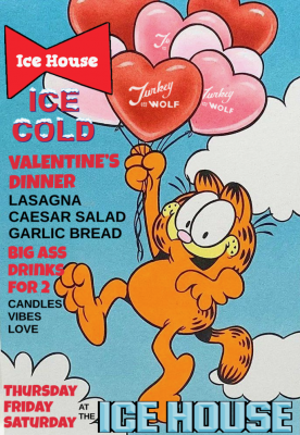 Celebrate Valentine's Weekend at Turkey and the Wolf Icehouse from Thursday, February 12 through Sunday, February 15. Enjoy a special Valentine’s Dinner featuring a Big Slice of Lasagna, Caesar Salad, and Big Cheesy Garlic Bread. Pair your meal with Big Ass Bevs for 2 (a Huge Ass Aperol Spritz and Pimm's Pleasure for 2), plus the Icehouse is offering half off bottles of wine. Dine surrounded by quintessential red-and-white checkered tablecloths and candlelight for the perfect romantic vibe. Available open to close.