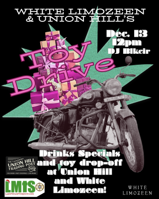 Embrace the season of giving with White Limozeen and Union Hill Trading Post as they support the Last Minute Toy Drive—a local charity dedicated to providing Christmas gifts for families in need. Stop by White Limozeen on Saturday, December 13 from 12 to 4 p.m. with a new toy donation and enjoy cocktail specials alongside a DJ set from Blkcir.