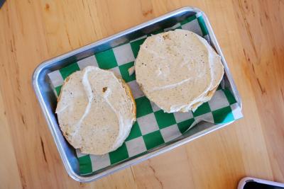 The rotating monthly schmear program by the team behind Bagelshop—featuring different restaurant partners or chefs creating a limited-time schmear available for one month only—continues in April with Butcher & Bee. This collaboration features a Fermented Honey & Black Pepper schmear by Butcher & Bee executive chef Chris DeJesus using fermented honey, a little salt, and fresh ground black pepper. The schmear will be available daily at Bagelshop from 7 a.m. to 2 p.m. for the full month of April and beginning this Saturday, April 4 the Butcher & Bee weekend brunch menu will offer a Strawberry Rhubarb Bagel Tartine featuring the collaboration schmear, strawberry-rhubarb jam, and fresh strawberries, on a Zaatar bagel from Bagelshop - available each weekend this month.