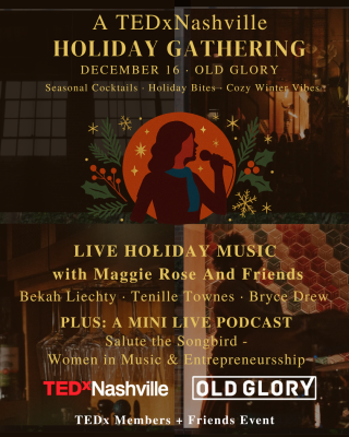 TEDxNashville is hosting an intimate Holiday Gathering at Old Glory. Think a cozy night of music, conversation, and community. Set inside one of Nashville’s most atmospheric venues, the evening brings together artists, creatives, and TEDx community members for a warm EOY celebration.