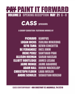 Opening to the public on Thursday, May 21, “Paint It Forward: Vol. 3” features artists from Nashville, from across the United States, and from international locations, representing a dynamic and globally influenced exhibition united under one purpose: community. Inspired by the concept of “paying it forward,” this exhibition is rooted in the belief that art thrives through connection, generosity and shared opportunity.