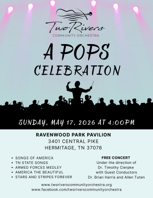 Enjoy a relaxing Sunday afternoon filled with music, community, and patriotic spirit as your Two Rivers Community Orchestra presents an outdoor concert in the park. This family-friendly performance celebrates the rich musical heritage of America with a program that honors tradition, service, and regional pride.